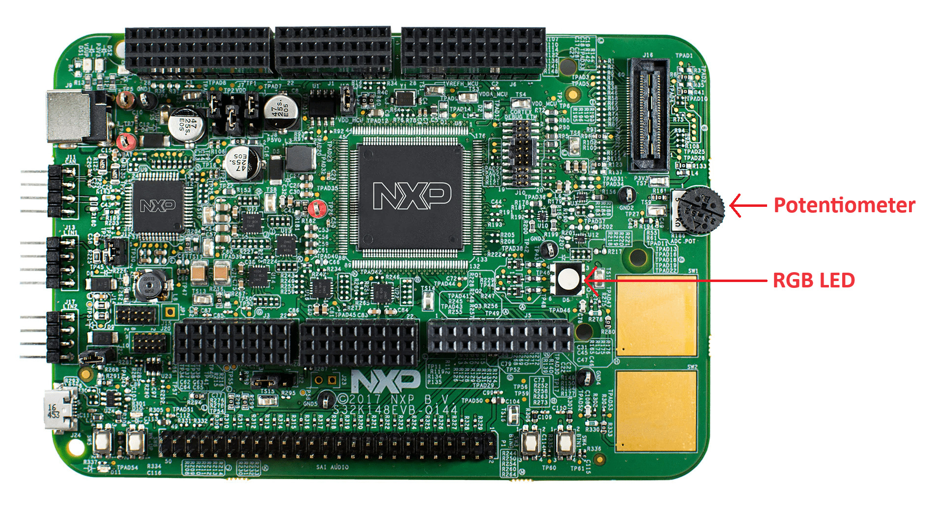 If you have a S32K148 development board then you can test some of its hardware features and explore how they are accessed via the SDK. If you have been following the lessons and have successfully built and flashed an image on the S32K148 development board then you will find that if you turn the potentiometer on the board, then the board’s RGB LED will change its brightness.