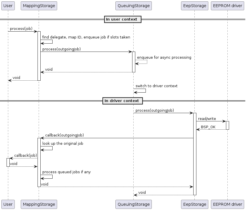 EEPROM driver. The queuing storages get associated with the corresponding low-level storages and