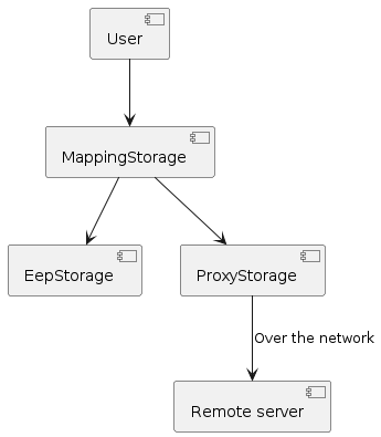 Storages are kind of plugins that can be added, removed or rearranged depending on the project needs. The “storage system” setup should stay fixed after startup and not change during normal runtime. This document discusses mainly the “demo” setup shown in the diagram below. Whenever other setups are discussed, it will be mentioned specifically.