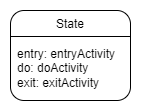 Events can be ignored, can trigger a state change or can trigger state internal actions
